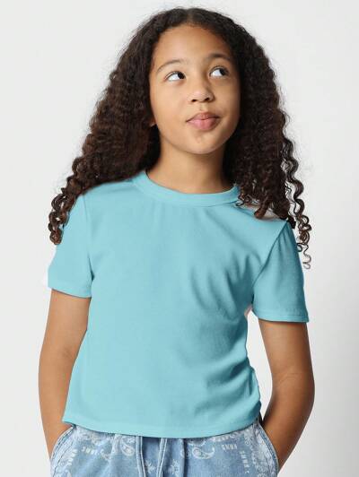 T-shirt côtelé classique à col ras du cou et manches courtes pour tous les jours-30%
