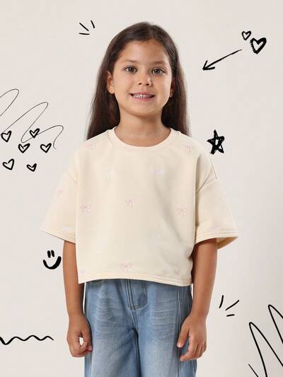T-shirt court à manches courtes avec broderie nœud