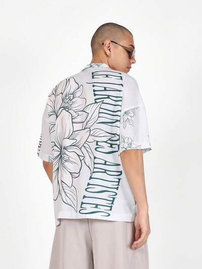 Chemise blanche oversize à coupe carrée avec impression de texte "épuisé" pour hommes-50%