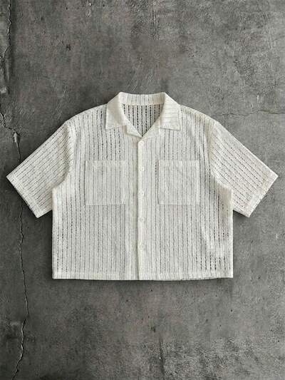 Chemise à manches courtes en maille ajourée avec col classique-40%