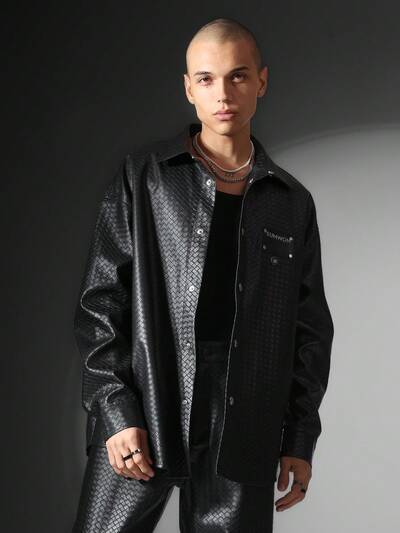 Chemise oversize ajustée aux manches longues avec imprimé en relief au dos