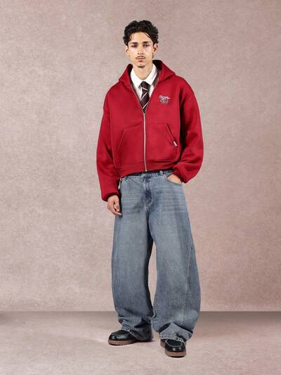 Sweat à capuche zippé coupe carrée avec écusson numéro-40%