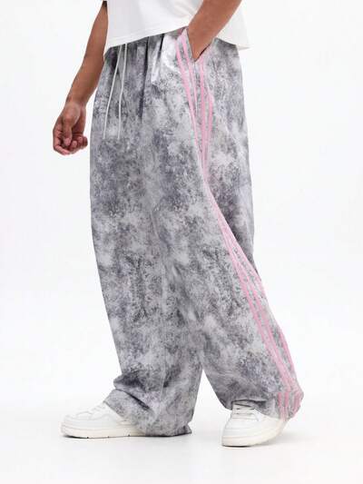Pantalon de jogging ample à imprimé tie-dye rose avec détail de bande latérale, coupe ample et décontractée avec cordon de serrage-5%