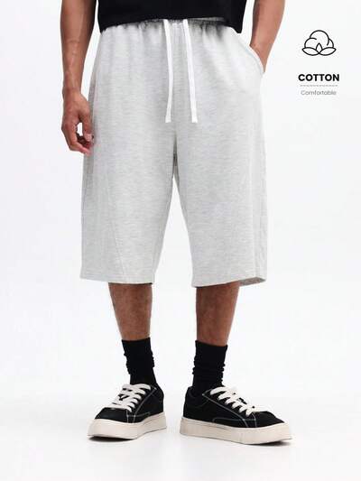 Short en coton à cordon de serrage et taille élastique