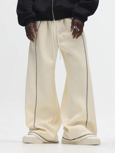 Pantalon de survêtement à jambes larges avec coutures contrastées-20%