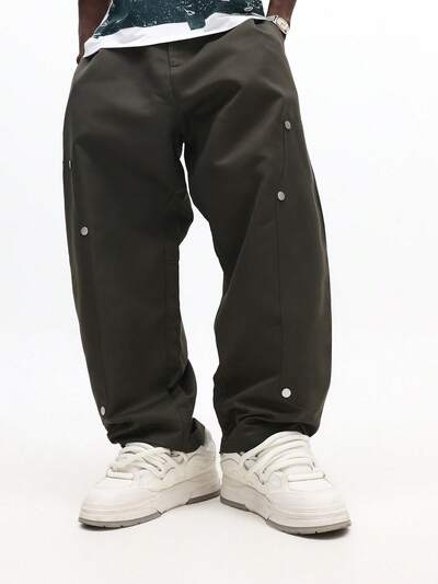 Pantalon de charpentier coupe tonneau avec boutons métalliques-10%