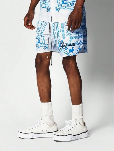 Short cargo avec imprimé camouflage et graffiti, coupe avec fourche tombante-45%