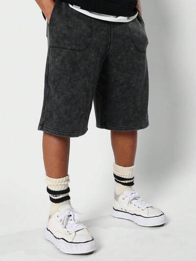 Short lavé à double couche avec imprimé graphique à l'avant