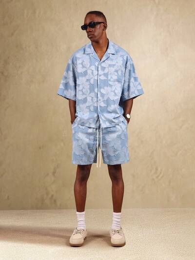 Chemise et short en jacquard fleuri à col cubain