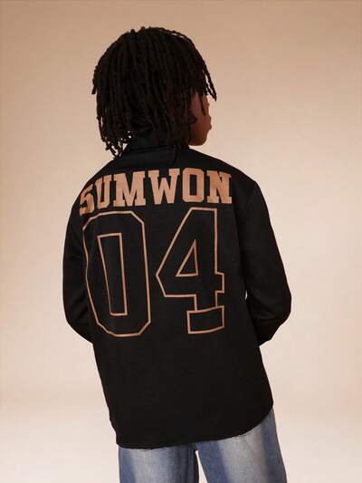 Tee-shirt d'été surdimensionné pour garçons avec patch logo blanc, t-shirt décontracté à manches courtes pour pré-adolescents