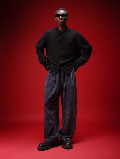 Chemise en jean délavé avec éclaboussure de peinture-50%