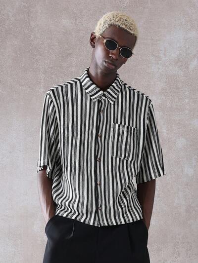 Chemise boutonnée à manches courtes et rayures en tricot-50%