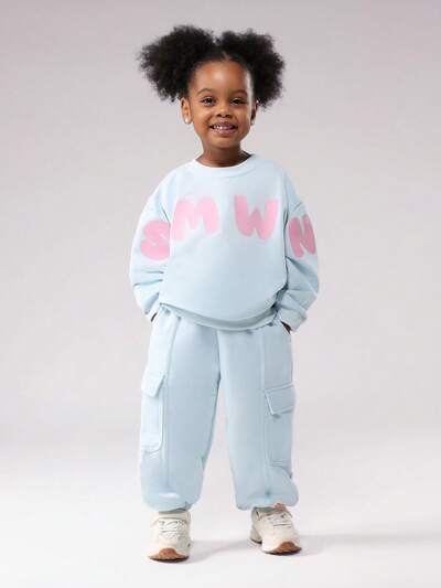 Felpa oversize e set jogger con testo rosa-30%