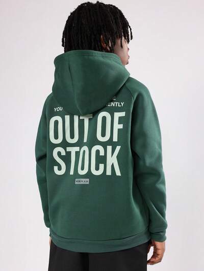Felpa con cappuccio verde bosco con grande stampa di testo-30%