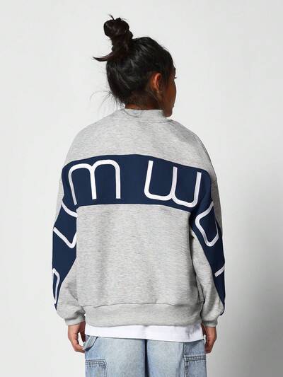Felpa girocollo sportiva con stampa a lettere maiuscole per il comfort quotidiano-50%