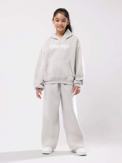 Completo felpa con cappuccio e pantaloni a gamba larga con stampa Chicago-50%