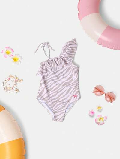 Costume da bagno intero con protezione solare e volant monospalla-40%