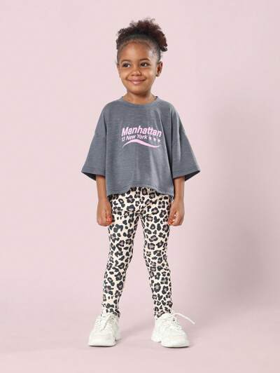 T-shirt corta con stampa Manhattan e leggings con stampa animalier