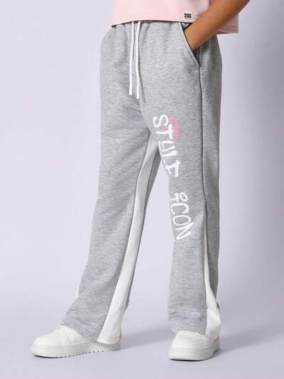 Pantaloni della tuta in pile a gamba larga con stampa di lettere rosa-50%