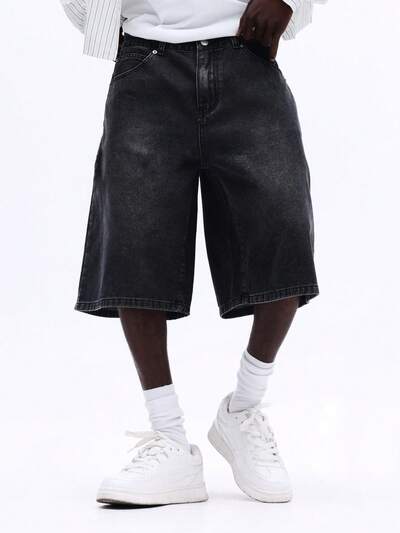 Pantaloncini in denim urbano a vita alta con orlo grezzo oversize e gamba larga da streetwear-40%