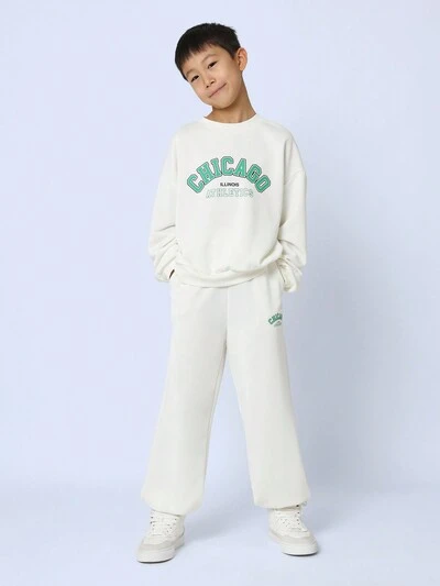 Set da 2 pezzi composto da felpa girocollo comoda con vestibilità regolare e stampa grafica per ragazze tween, abbinata a pantaloni della tuta
