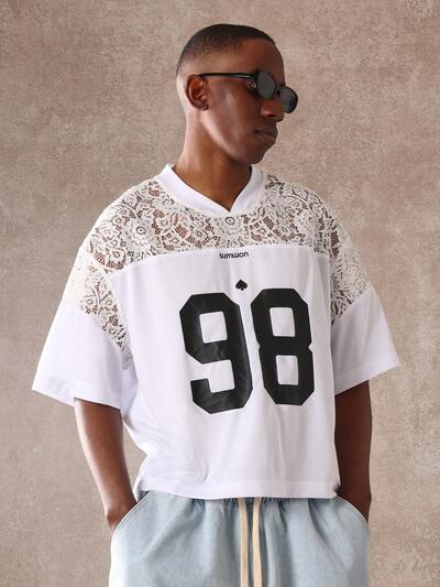 Maglietta con inserto in pizzo e numero universitarioNUOVO