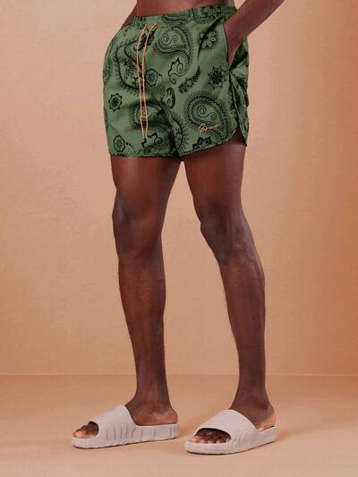 Pantaloncini da bagno a stampa paisley ad asciugatura rapida, con tema di San Patrizio, tronchetti da spiaggia a tema irlandese, con vita elastica, abbigliamento sportivo con ciondolo portafortuna-30%