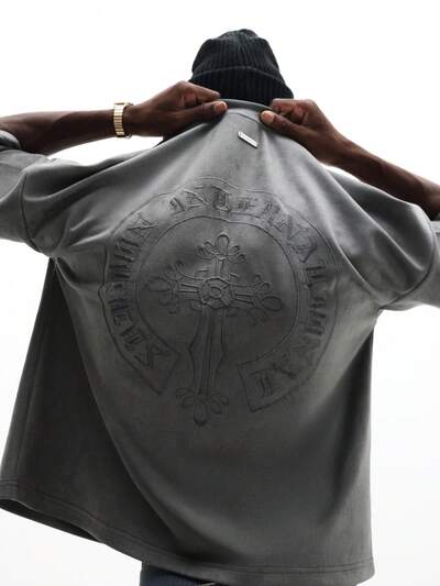 T-shirt con grafica a croce in rilievo dalla vestibilità regolareCamicia corta a maniche lunghe con bottoni e tasche anteriori