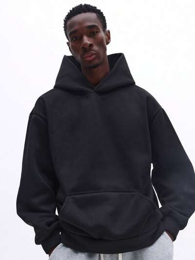 Felpa con cappuccio nera oversize con coulisse-40%