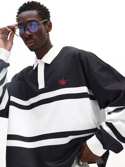 Polo da rugby squadrata con colletto a contrasto-25%