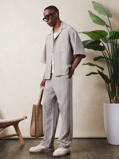Set composto da camicia con collo a rever stile rustico e vestibilità boxy e pantaloni a gamba dritta-50%