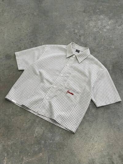 Camicia a maniche corte con bottoni e stampa di testo divertente a quadri Gingham