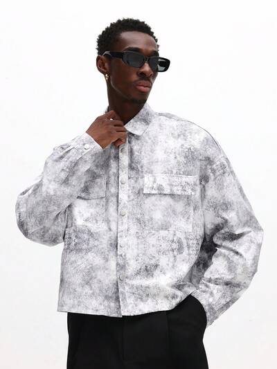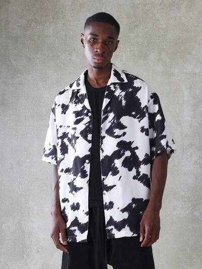 Camicia a maniche corte con colletto revere e motivo tie-dye astratto-30%