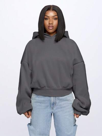 SUMWON WOMEN Felpa oversize corta con cappuccio e maniche lunghe