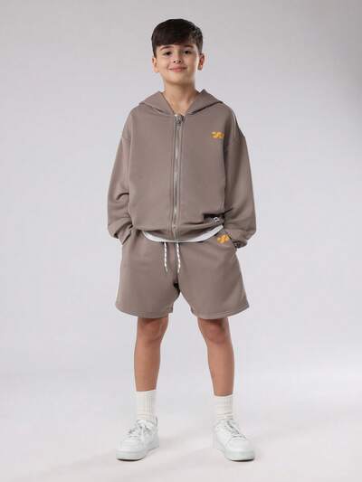Completo con felpa con cappuccio e zip intera e pantaloncini con coulisse abbinati