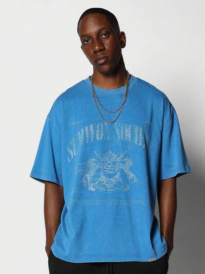 T-shirt oversize a maniche corte lavata con stampa grafica-50%