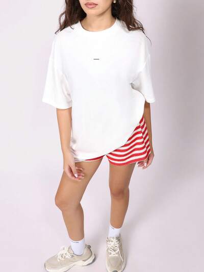 小さなロゴ入りオーバーサイズ半袖コンフォートTシャツ-50%
