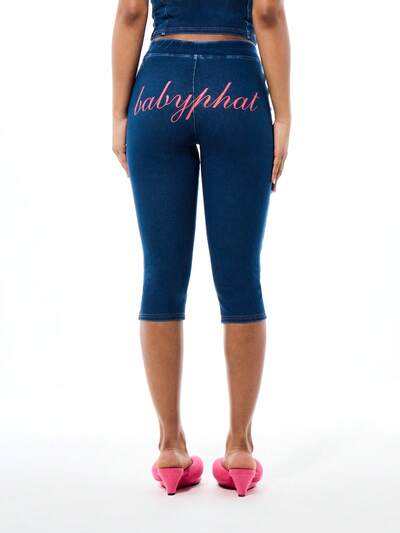 BABYPHAT ベロア素材 クロップド丈 レギンス ラインストーン スクリプト ディテール ハイライズ ストレッチ カジュアル コンフォート