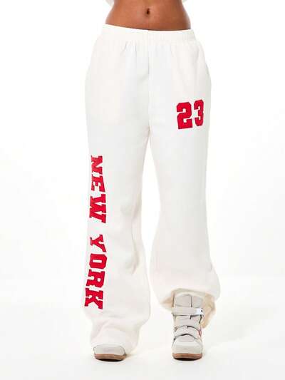 SUMWON WOMEN オーバーサイズ ワイドレッグ スウェットパンツ ラインストーングラフィック