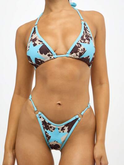 SUMWON WOMEN タイガーアニマルプリント三角ホルタービキニセット-40%