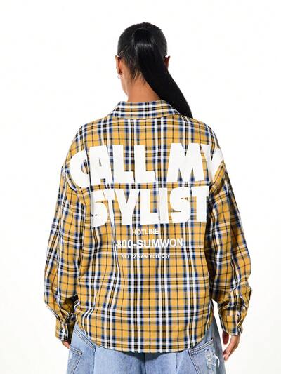 SUMWON WOMEN オーバーサイズチェック柄ボタンダウンシャツ(バックプリント)新しい