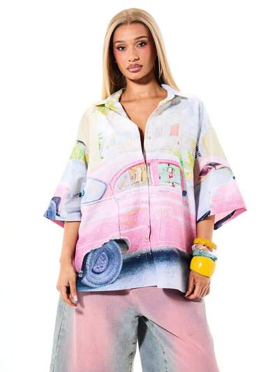 SUMWON WOMEN オーバーサイズ トロピカルプリント ボタンシャツ(襟付き)