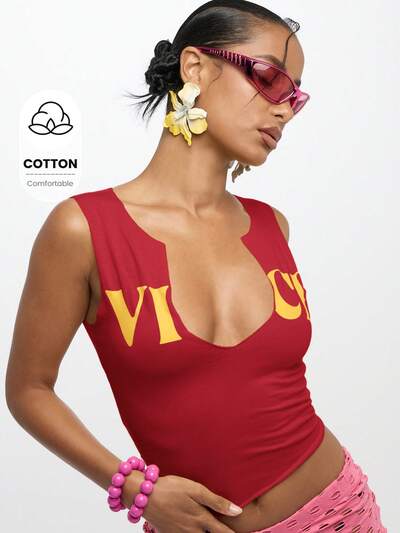 SUMWON WOMEN Y2Kレトロノースリーブタンクトップキャミベスト