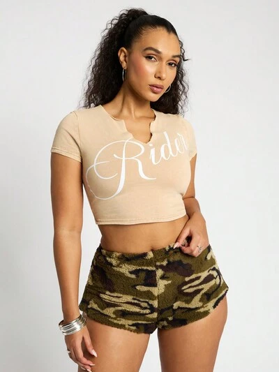SUMWON WOMEN パンクスタイル カモフラージュ プリント クロップド シャツ-50%