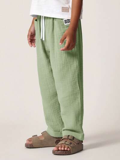 テクスチャードコットンの快適な通気性ワイドレッグパンツ-45%