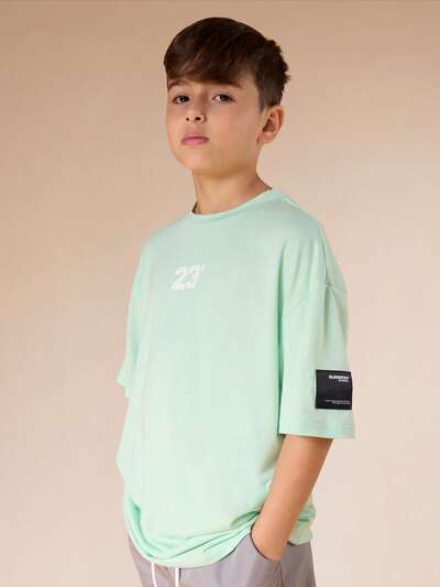 オーバーサイズグラフィックTシャツとスウェットパンツのセットボーイズ バーシティリーグ フットボールグラフィック オーバーサイズTシャツ&ショーツ 2ピースコーディネートセット グリーン