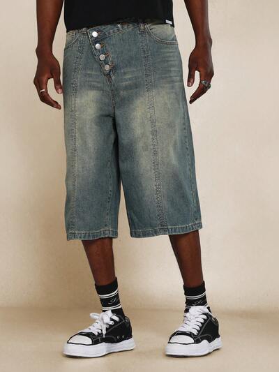 チーター柄 ツイル 生地 刺繍入り デニム ショートパンツ-45%
