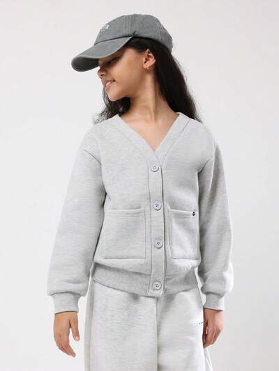 フロントポケット付きVネックボタンフロントカーディガン-10%