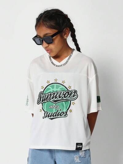 子供用 ユニセックス メッシュ バスケットボールジャージ プリント付き-50%