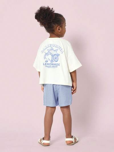 ビーチクラブ貝殻プリントクルーネック半袖Tシャツと伸縮ウエストショーツ夏のコーデセット(ガールズ用)-35%